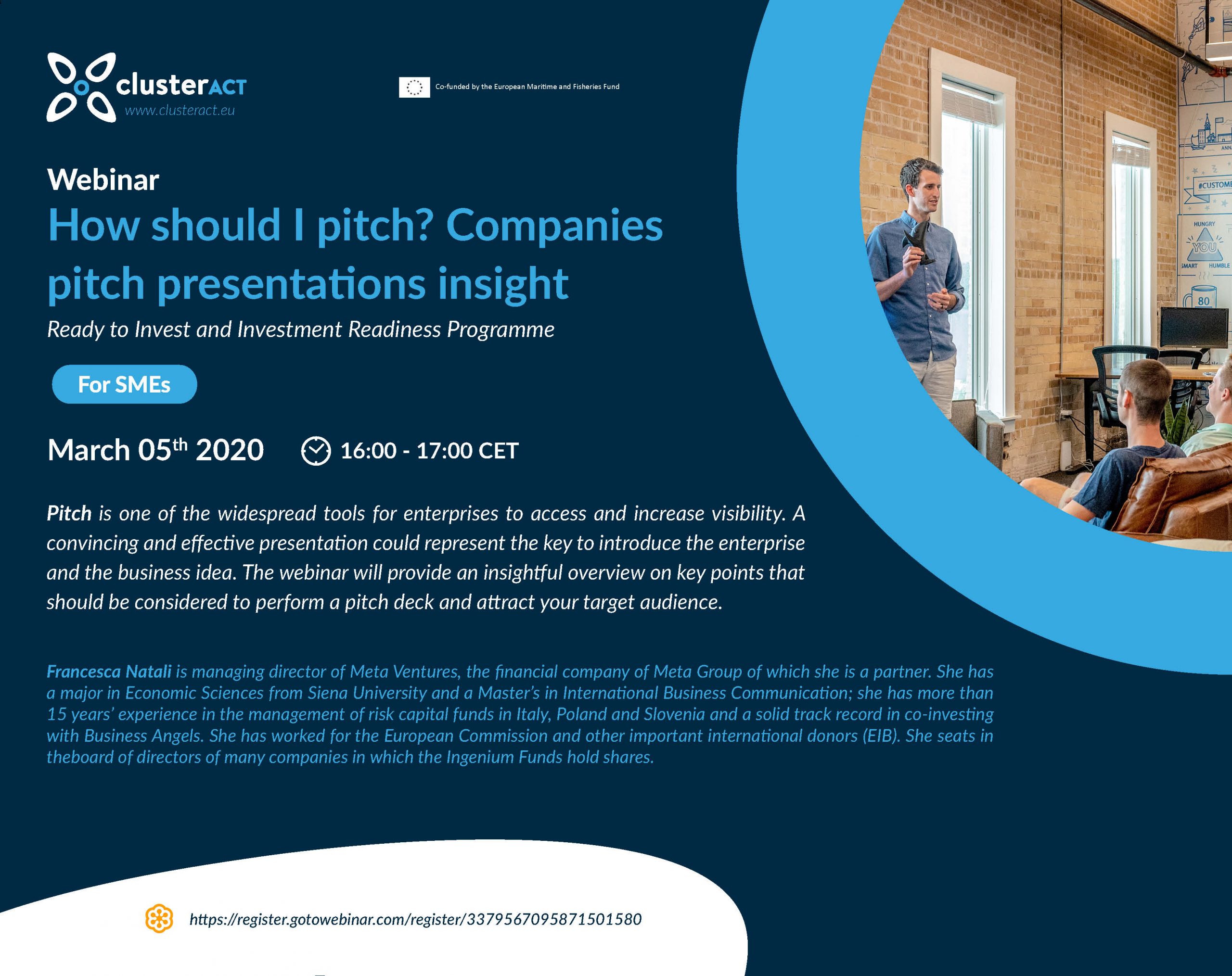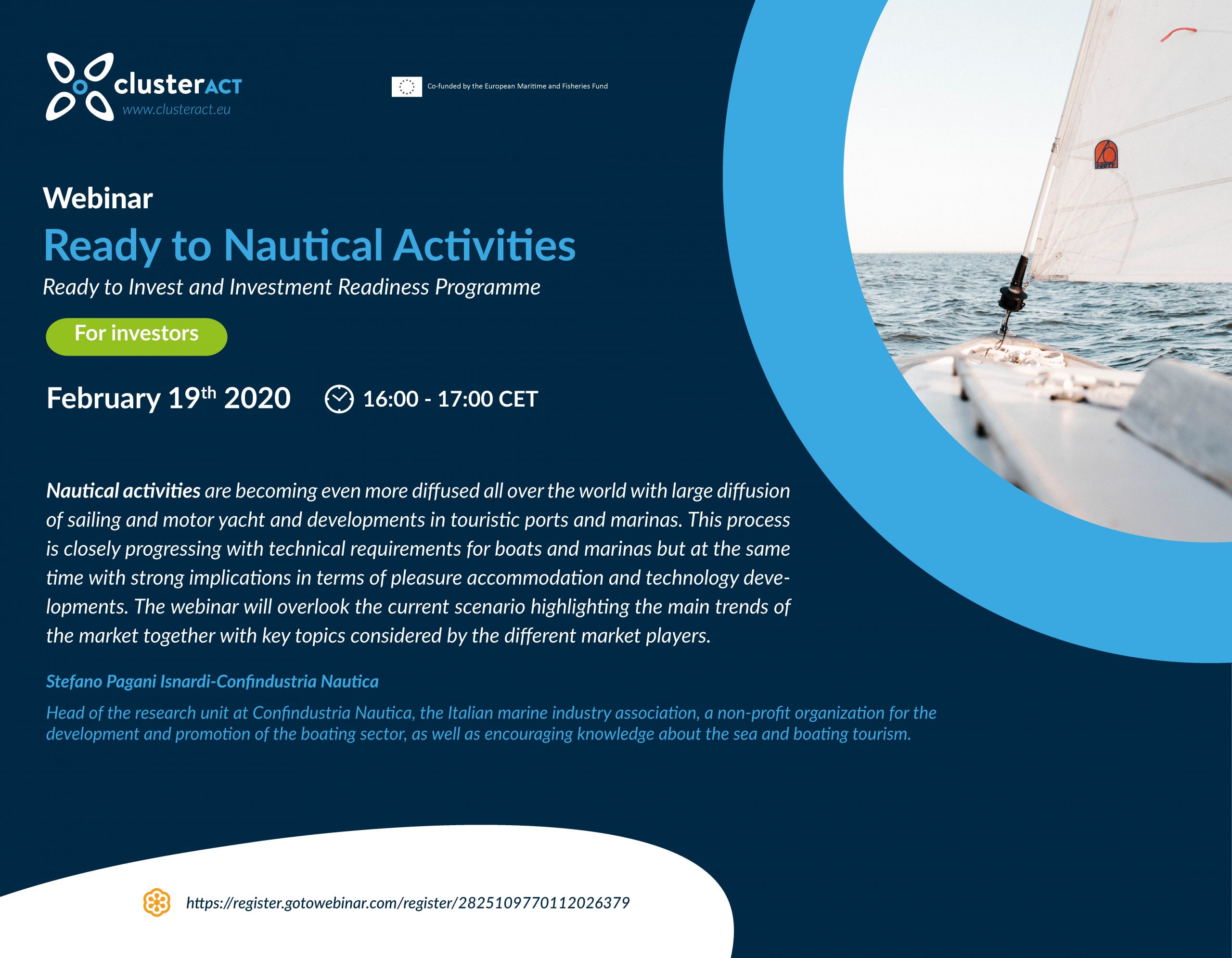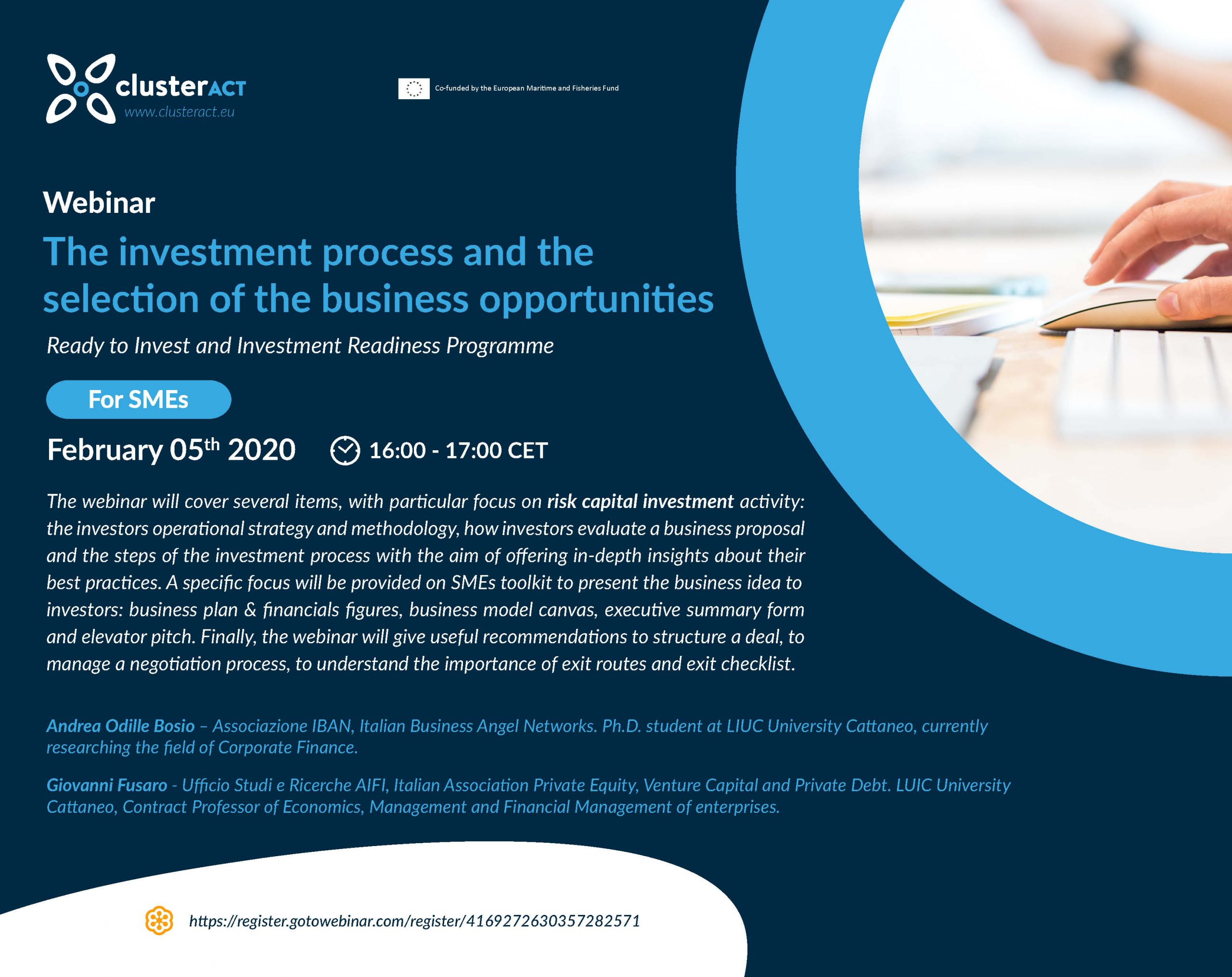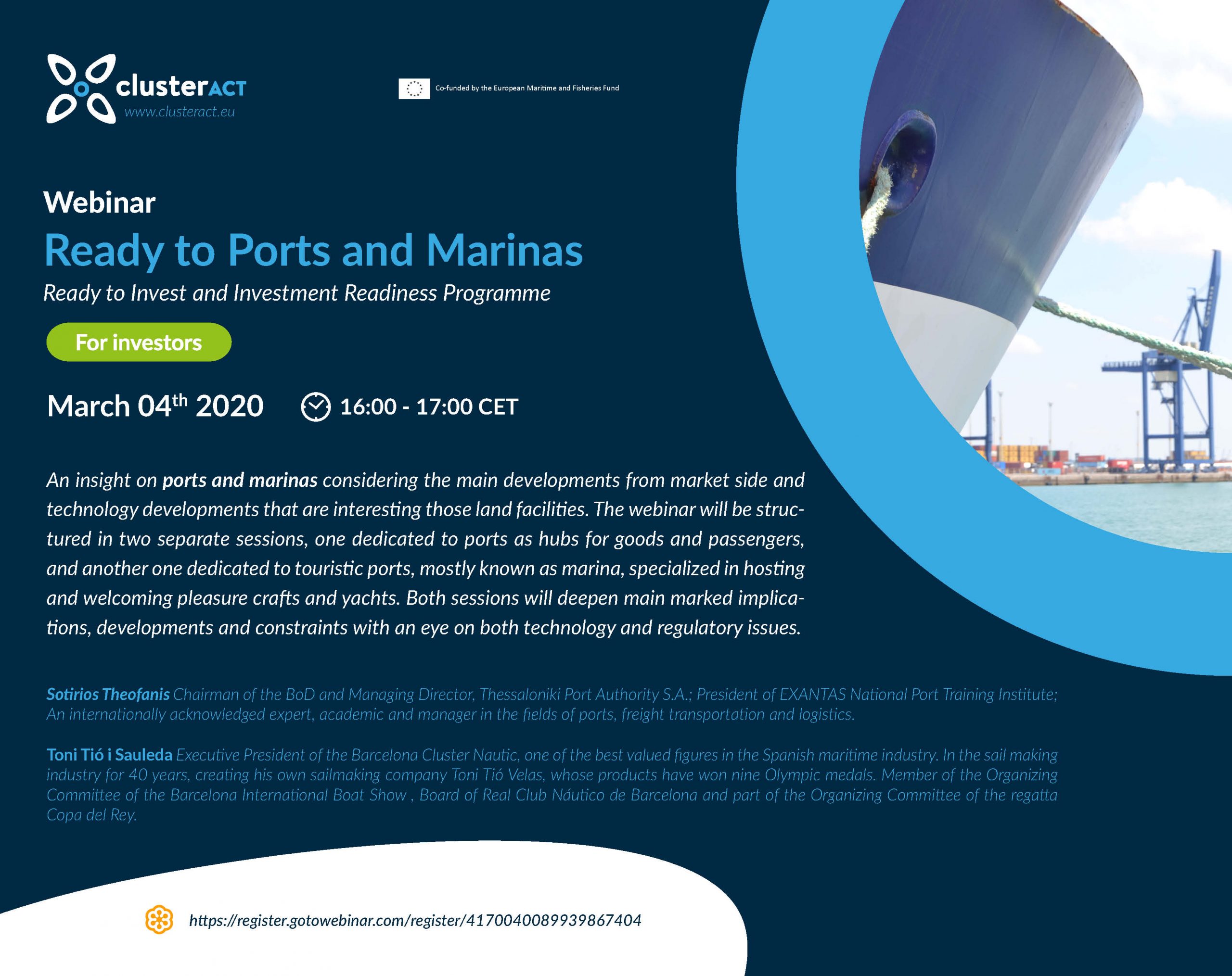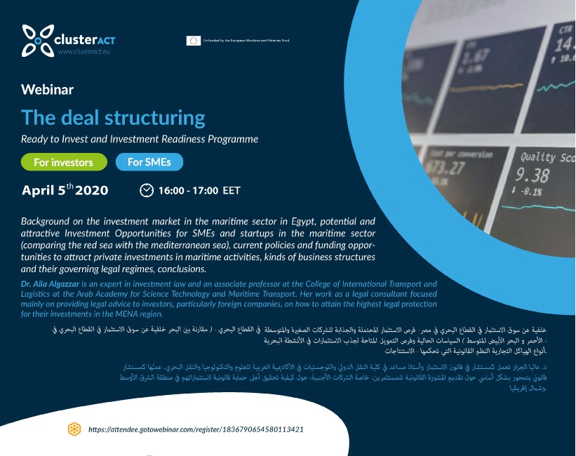 The webinar is organized in the framework of Cluster ACT project, funded by EASME EMFF and tailored to support investments in the maritime sector in the Mediterranean.