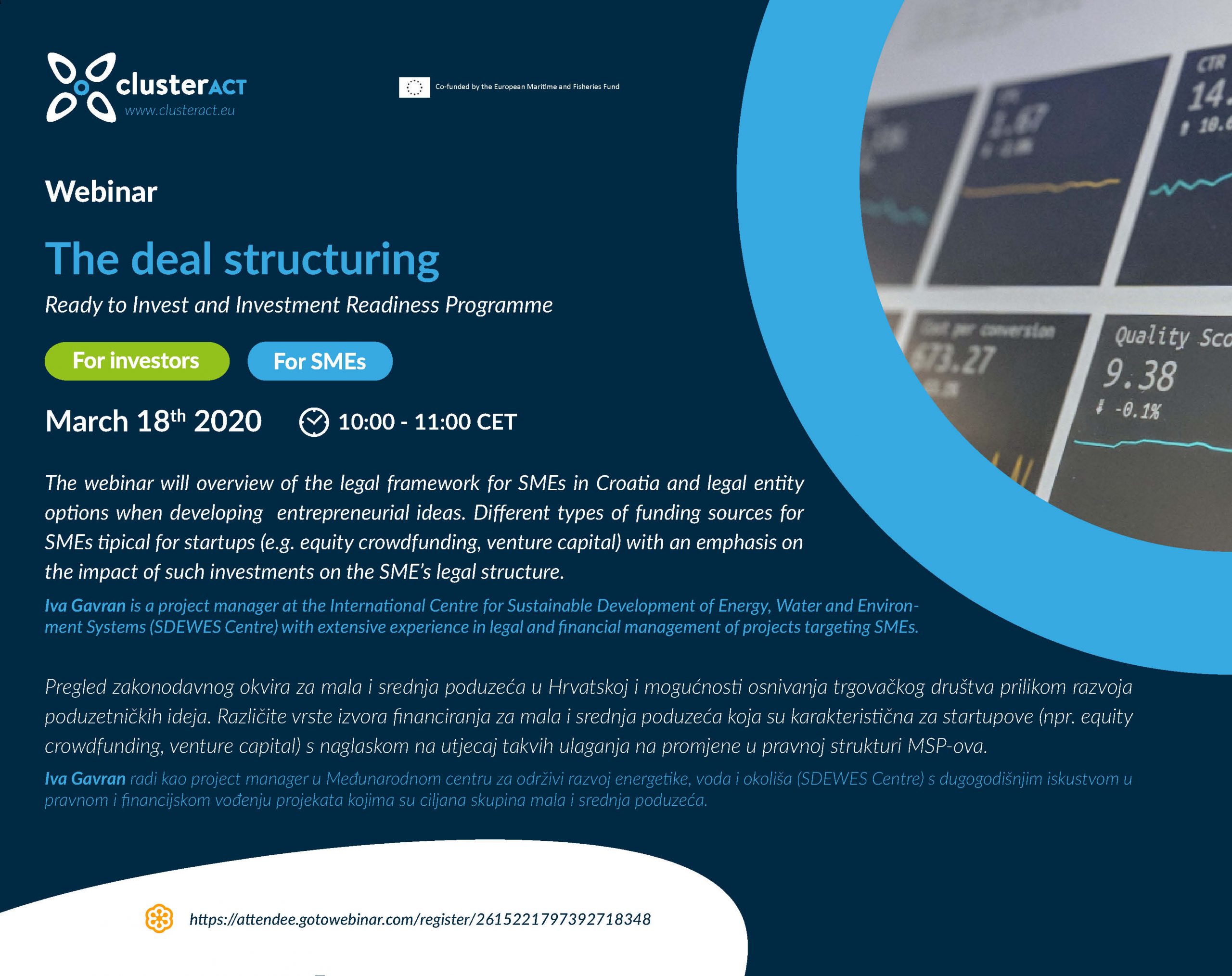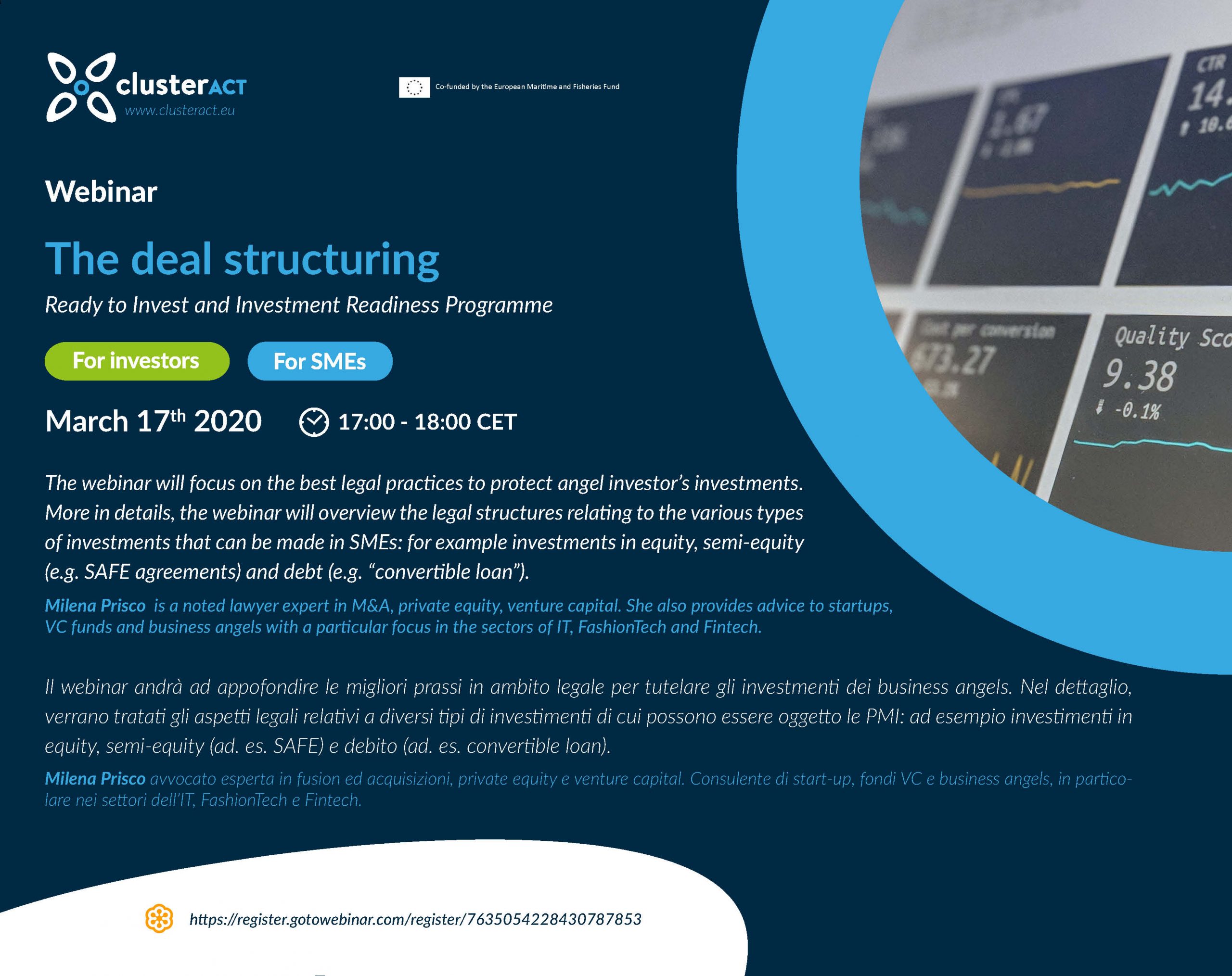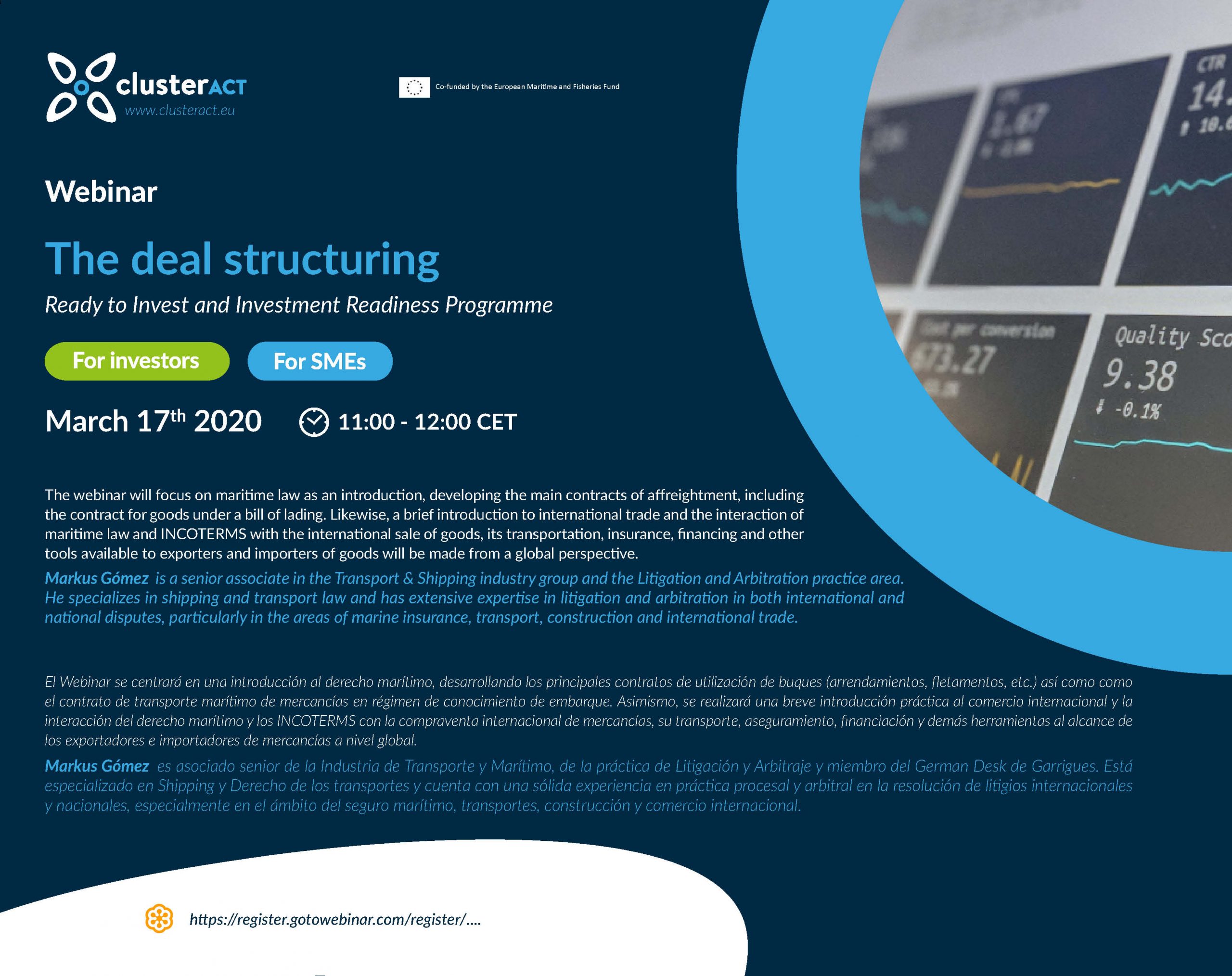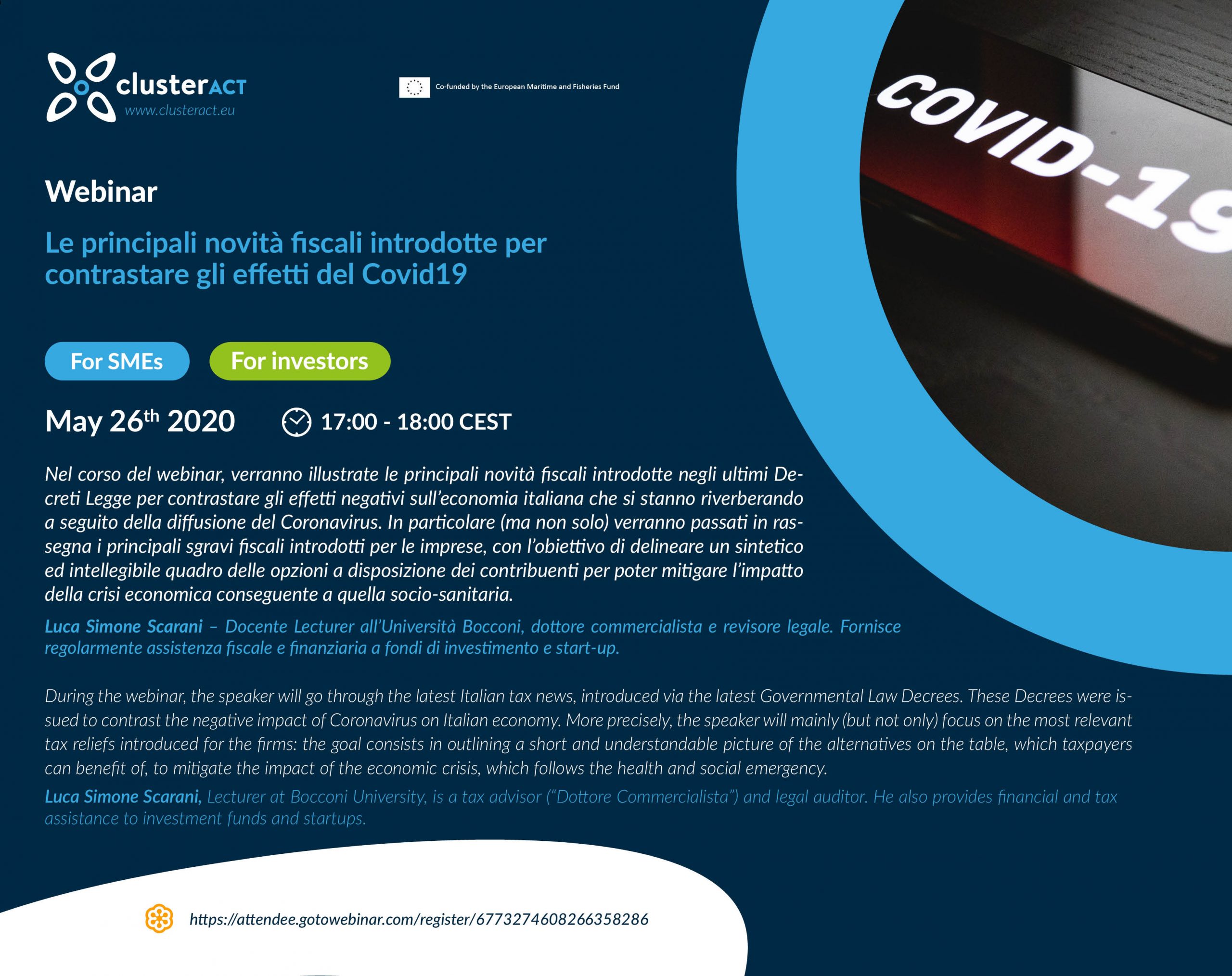 The webinar is organized in the framework of Cluster ACT project, funded by EASME EMFF and tailored to support investments in the maritime sector in the Mediterranean.