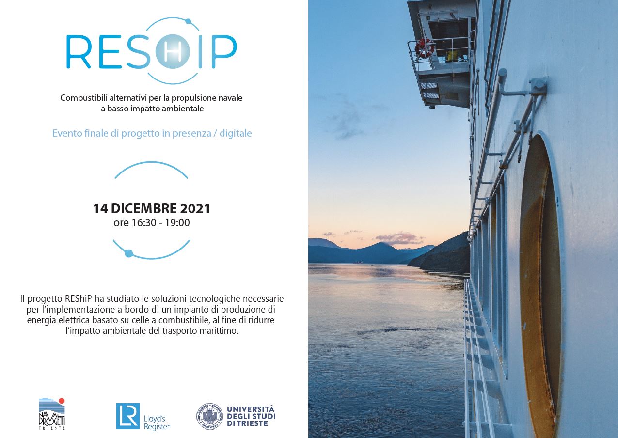 Martedì 14 dicembre 2021 si svolgerà l’evento finale del progetto “RESHIP – Combustibili alternativi per la propulsione navale a basso impatto ambientale”, sviluppato da Navalprogetti, Lloyd’s Register EMEA e l’Università degli Studi di Trieste, coordinato da mareFVG e realizzato grazie al cofinanziamento dei fondi POR FESR della Regione Friuli Venezia Giulia.