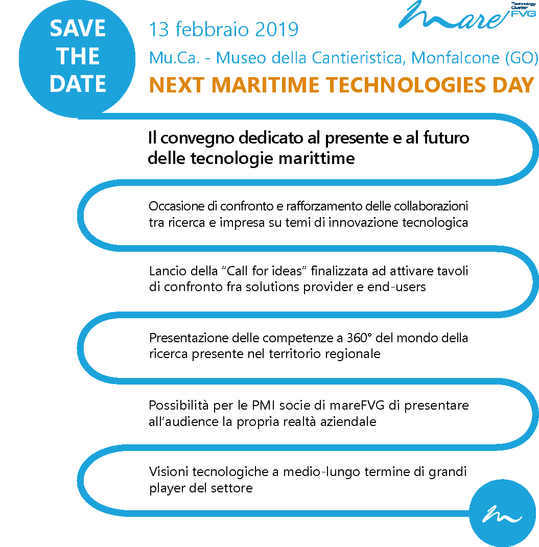 | 09 - mercoledì | Next Maritime Technology Road – 9 Luglio ore 14:00 Magazzino 26, Trieste |